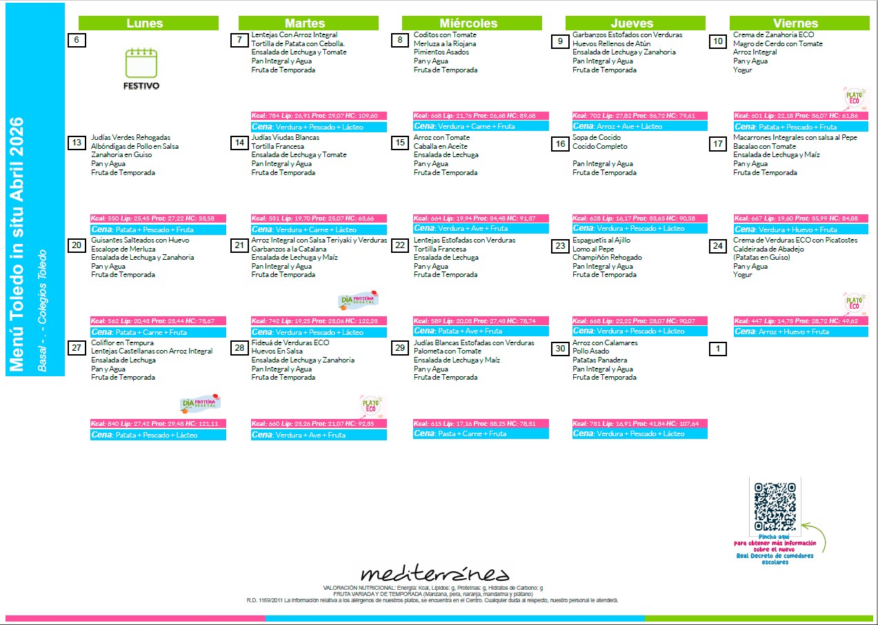Les informamos que el comedor escolar comenzará a funcionar desde el primer día del curso. La empresa suministradora del servicio es Mediterránea Central de Catering.